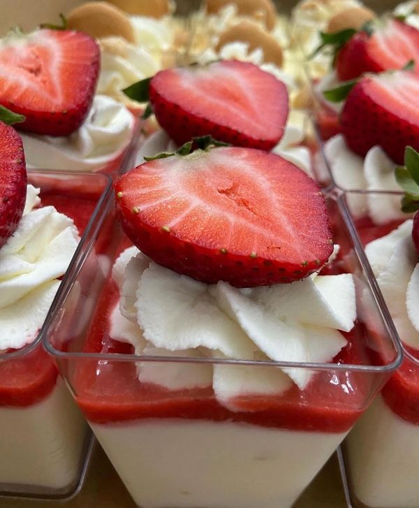 Layers of Greatness prepared in a 5 oz plastic dessert cup.